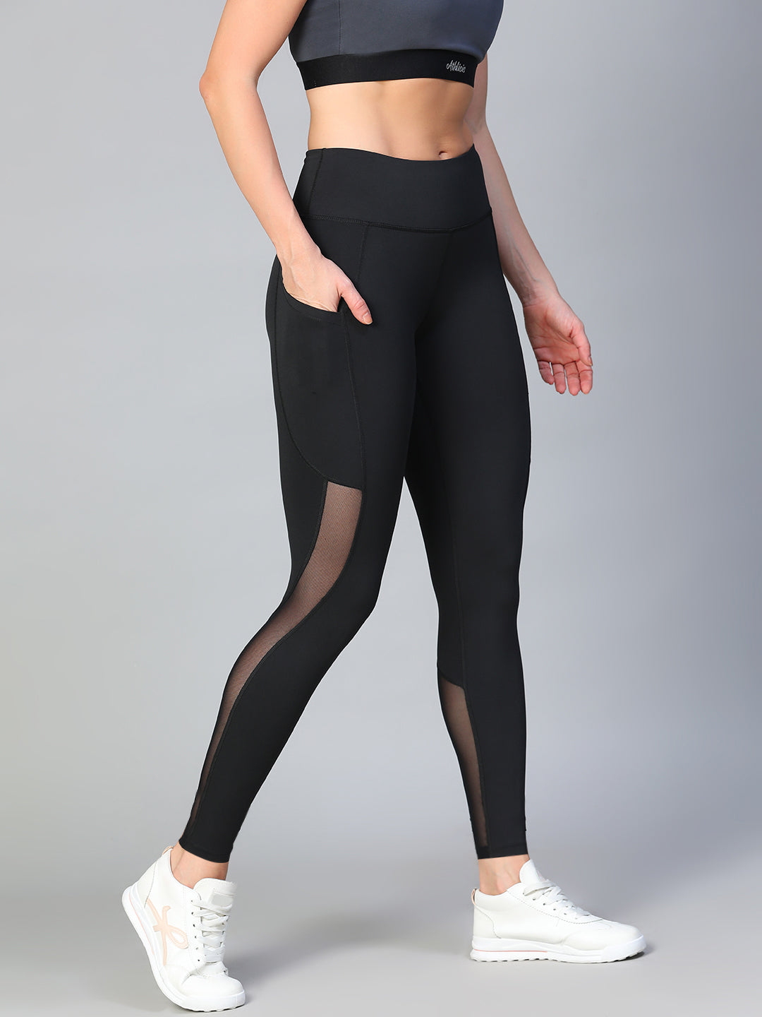 Mesh Panel Pocket Leggings Black